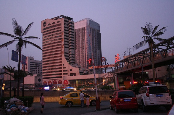 バスは成都火車(列車)駅付近の荷花池汽車駅に着く。降りると白タクやバイクタク、自転車タクばかりで、普通のタクシーがなかなか捉まらない。