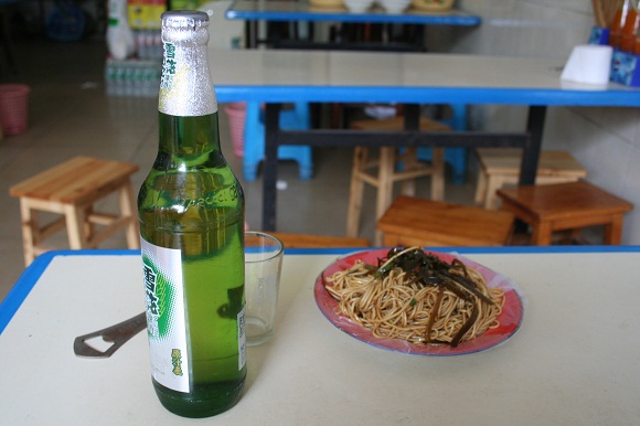 ホテルの入口横にある地下のファーストフード店(快餐)はとても安くビールも含めて2人で50元程度。