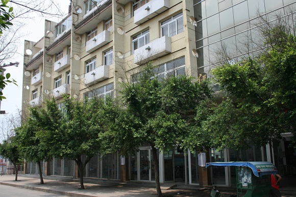 |   新車駅(大足県汽車客運中心)外から見た「新車駅」。3階以上はアパートになっており、かつ看板は木に隠れているので観光客はこのバス駅を見つけるのに苦労するだろう。 |   成都行バス14時にバスは発車して成都に向かう。料金は101元。バスはトイレ付。外気は36度でバスの中は26度と気温差が10度もあって天国のよう。しかし四川省に近づくにつれて天気が悪くなり雨が降り出した。 |