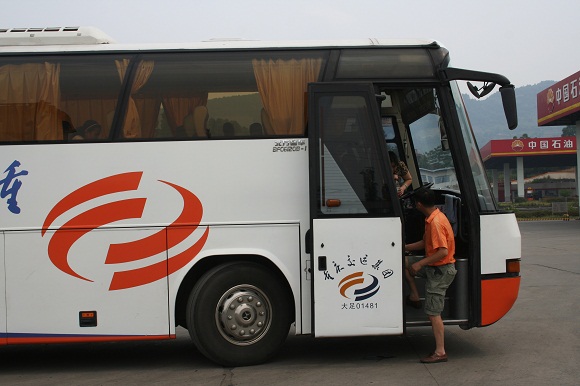 成都行バスの最終は結構早く14時。このバスの切符を購入後、宝頂山石刻に向かうためタクシーに乗りに外に出たらさっきのタクシーが待っていて運転手がニヤニヤしている。 |